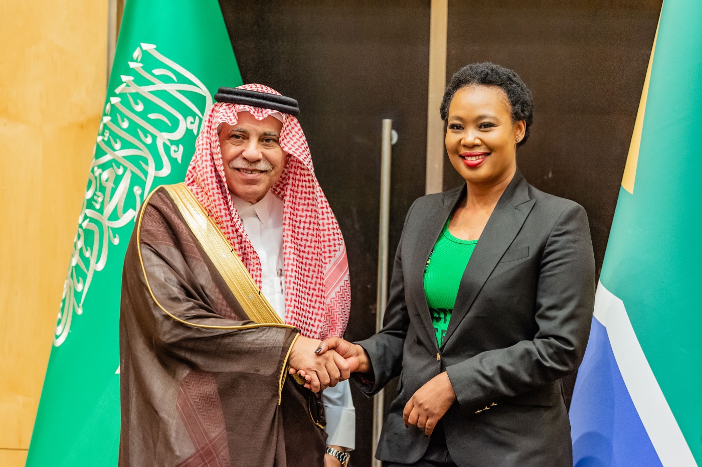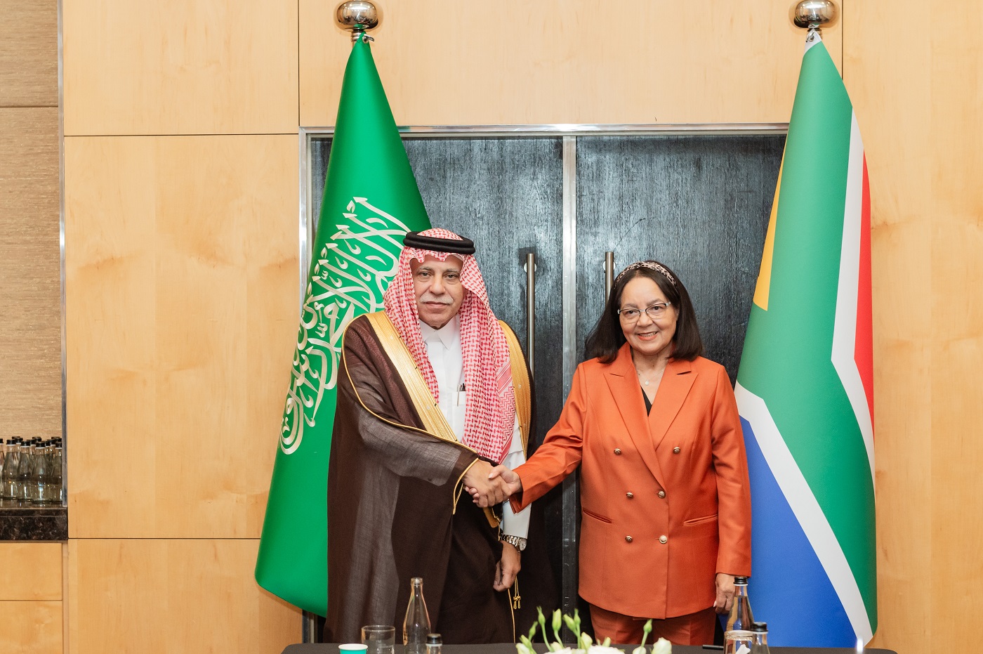 وعقد القصبي سلسلة اجتماعات مع أصحاب المعالي وزير التجارة والصناعة والمنافسة الجنوب أفريقي السيد باركس تاو، ووزير تنمية المشروعات الصغيرة السيدة ستيلا نادابيني أبراهامس، ووزير السياحة السيدة باتريشيا دي ليل، ووزير الزراعة السيد جون ستينهاوزن، حيث بحث معهم فيها تعزيز العلاقات التجارية الثنائية، والفرص الواعدة المتاحة لقطاعي الأعمال في البلدين الصديقين، وتسهيل تجارة الخدمات والسلع، ومشاركة الشركات الجنوب أفريقية في ملتقى (بيبان24)، والمبادرات التي تهدف إلى دعم وتمكّين المنشآت الصغيرة و المتوسطة، وتبادل الخبرات النوعية في القطاعات ذات الاهتمام المشترك.